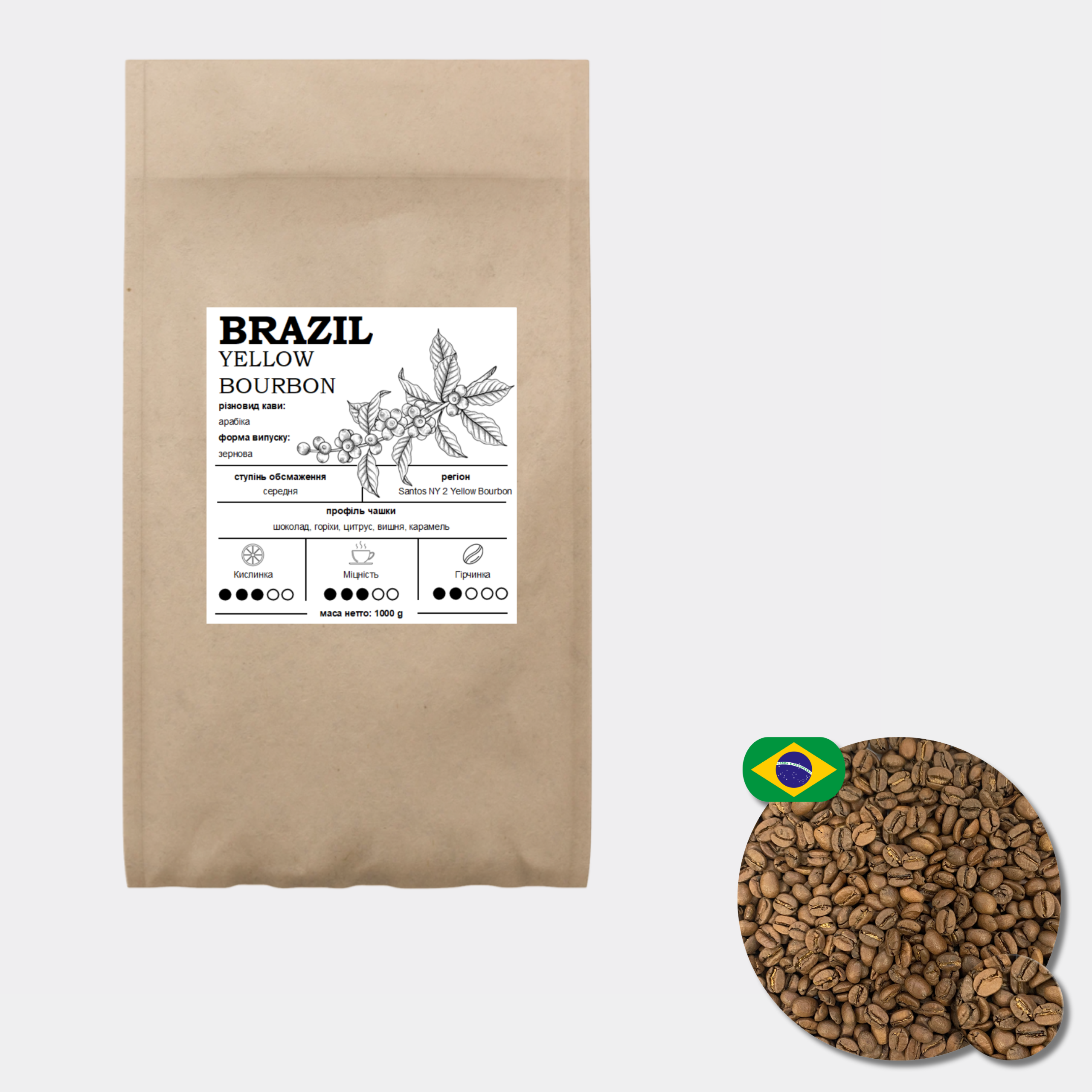 Кава зернова “Бразилія Жовтий Бурбон”, Арабіка 100%